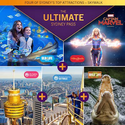 Admission to 2, 3 or 4 of the following attractions depending on selection: SEA LIFE Sydney Aquarium, WILD LIFE Sydney Zoo, Madame Tussauds Sydney, Sydney Tower Eye